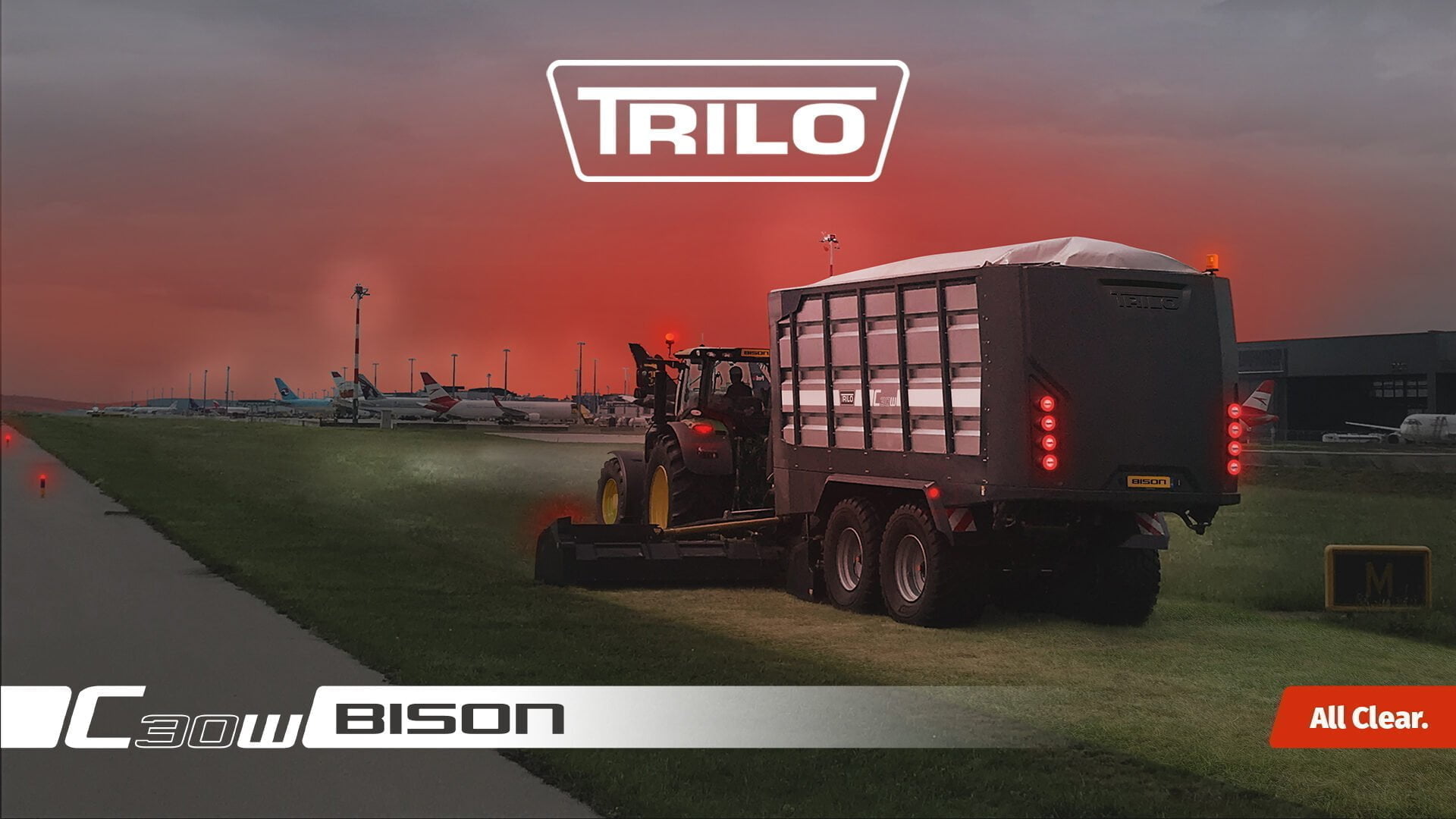 Thanks to the TRILO BISON’s large working width and loading volume, it is possible to work very efficiently. Fewer mowing movements and less driving back and forth to an unloading site and a hi working speed will limit costly runway closures.